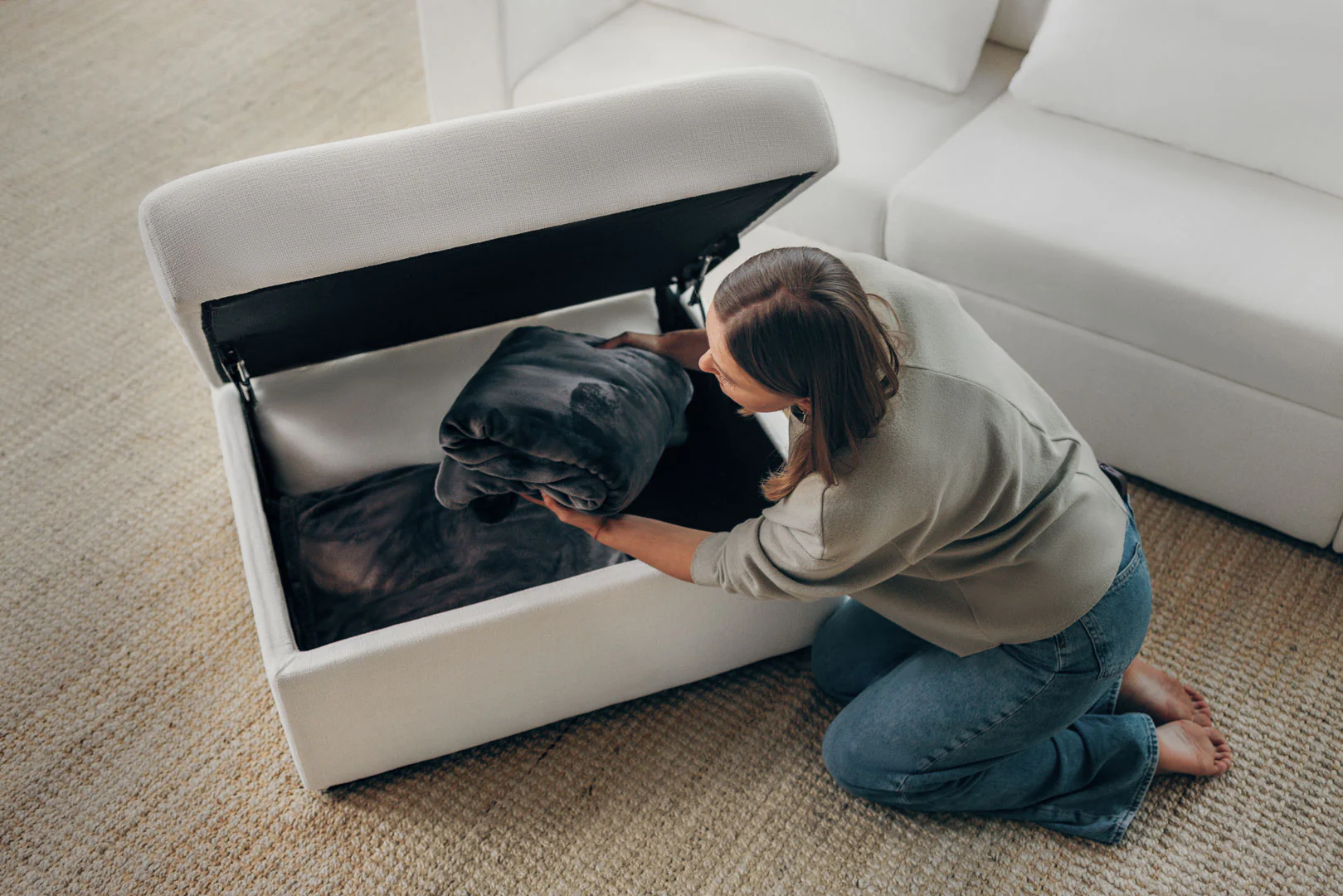Add the ottoman to make your sofa even more comfortable. Use it as a footrest, a coffee table, a storage bin, or extra seating for your guests.